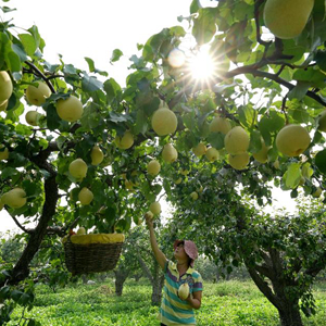 9月12日,河北省晉州市周家莊鄉果農在果園采摘鴨梨。