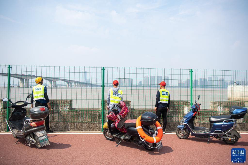 連日來(lái),為保障觀(guān)潮市民和游客的安全,浙江省杭州市蕭山區新街街道的防潮隊員高哨峰、傅幫華、賈文軍忙著(zhù)在江堤上巡邏。他們要看護一段1.9公里長(cháng)的錢(qián)塘江岸,每天負責勸導觀(guān)潮人遠離危險地段、勸返下江堤垂釣的釣魚(yú)人、檢查江岸邊的防護設施,被稱(chēng)為“喊潮人”。目前錢(qián)塘江兩岸共有“喊潮人”372名。