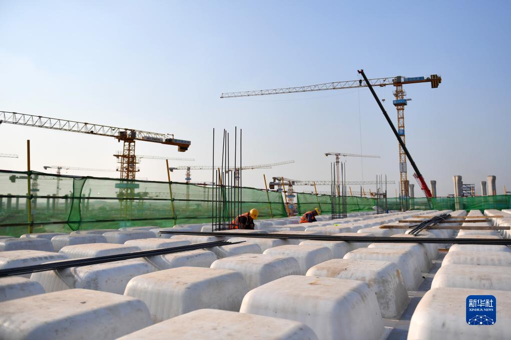 中秋假期期間,在長(cháng)沙機場(chǎng)改擴建工程綜合交通樞紐工程項目現場(chǎng),施工人員堅守崗位,保障工程進(jìn)展順利。