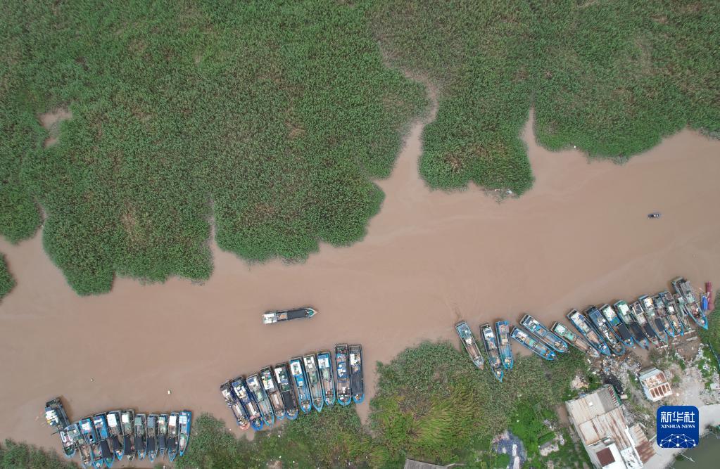 9月13日,漁船停泊在浙江省瑞安市飛云江內港躲避臺風(fēng)(無(wú)人機照片)。