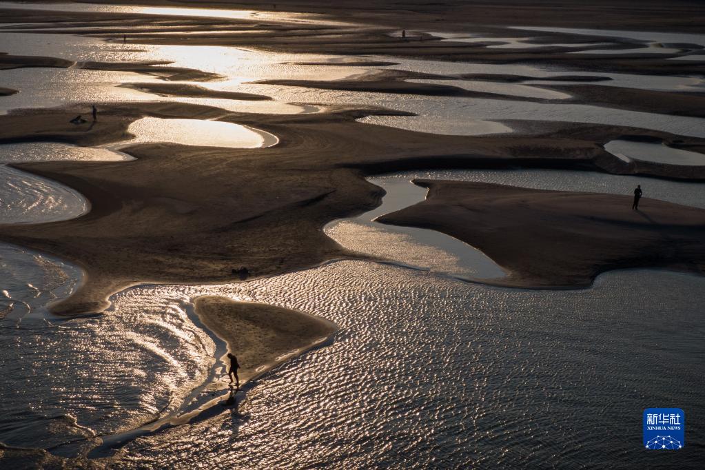 9月13日,市民在漢口江岸灘涂上游玩(無(wú)人機照片)。