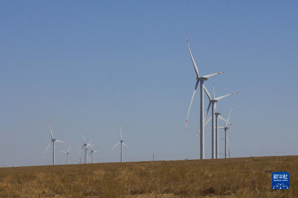 這是9月13日在哈薩克斯坦扎納塔斯拍攝的扎納塔斯風(fēng)電場(chǎng)風(fēng)機。新華社發(fā)(德米特里·瓦西連科 攝)