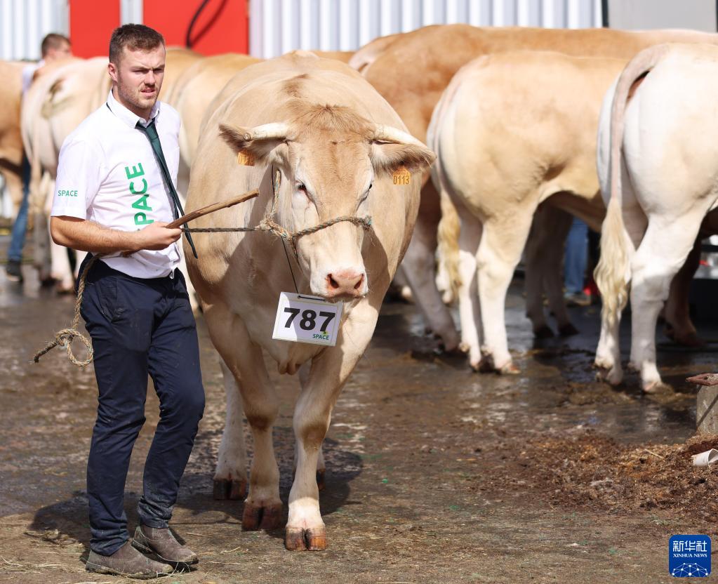 9月13日,在法國雷恩畜牧業(yè)展覽會(huì )上,參展商牽牛去參加比賽。