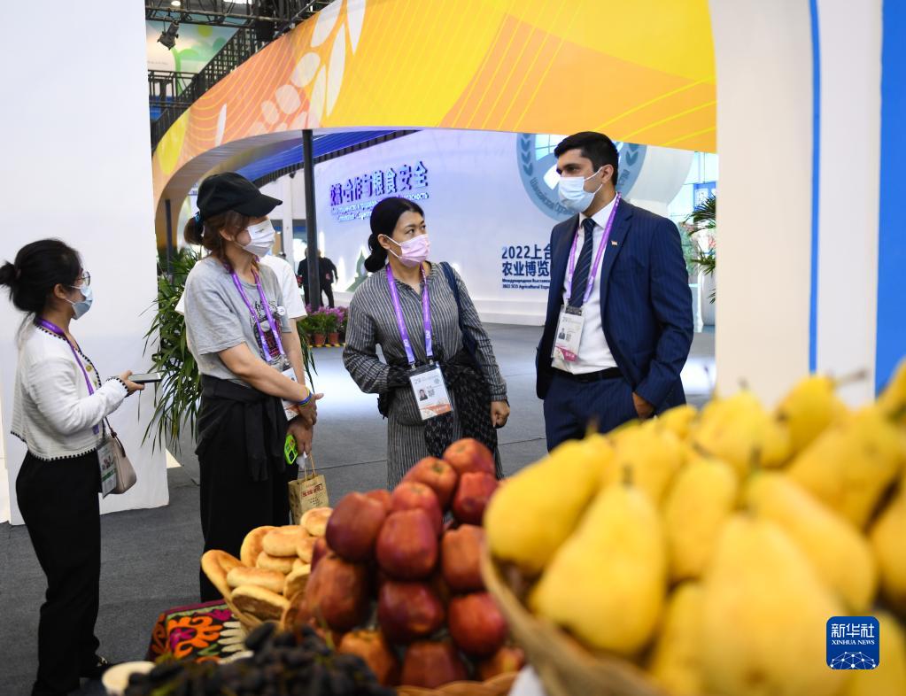 9月15日,參觀(guān)者在塔吉克斯坦展區了解特色水果。