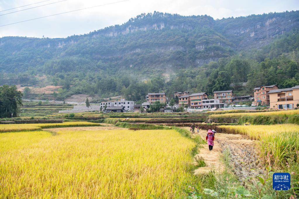 9月14日,在重慶市酉陽(yáng)土家族苗族自治縣花田鄉,稻農在稻田里搶收稻谷。 新華社記者 唐奕 攝