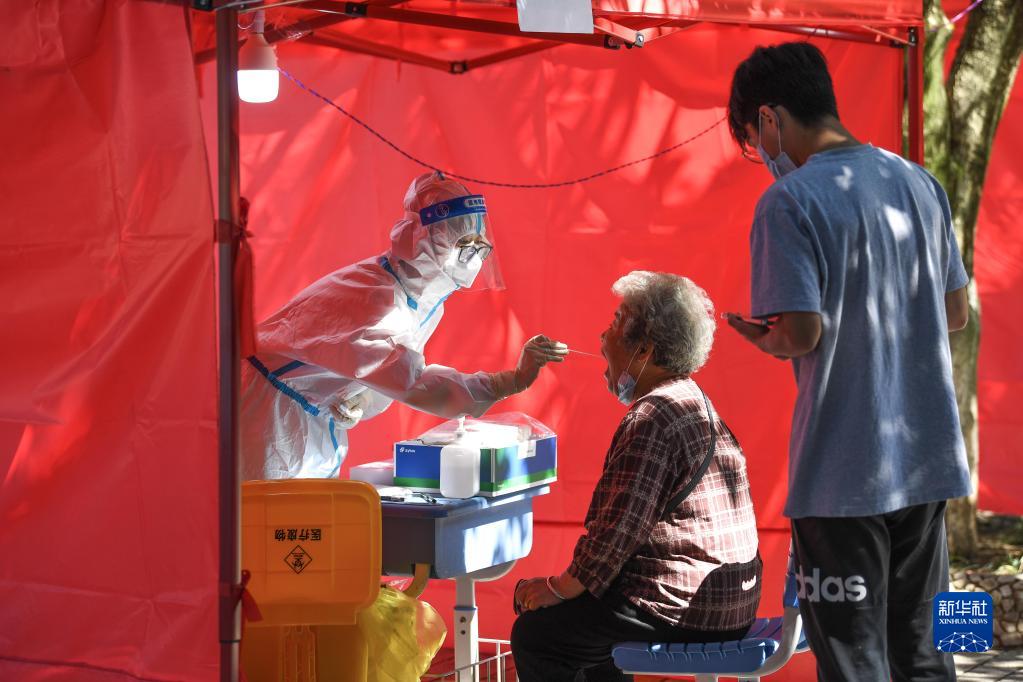 2022年9月5日,醫護人員在貴州省貴陽(yáng)市云巖區大營(yíng)路街道中天花園社區給市民做核酸檢測。新華社記者 楊文斌 攝