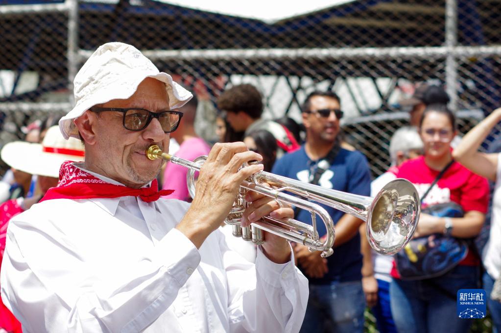9月15日,在哥斯達黎加埃雷迪亞,民眾走上街頭歡慶該國獨立201周年。
