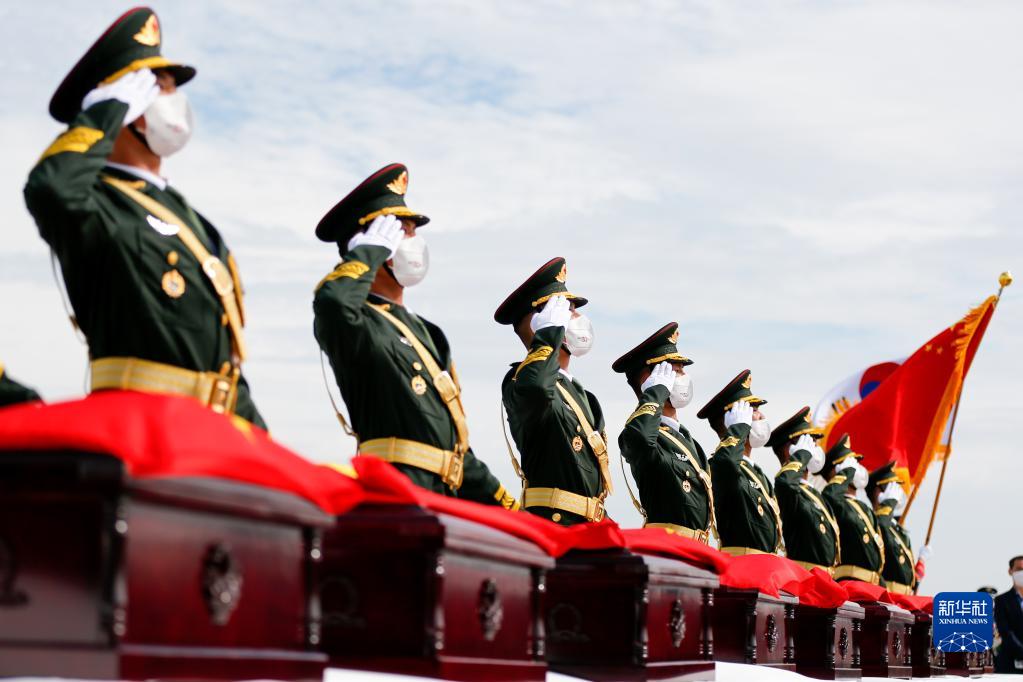 9月16日上午,中國和韓國在韓國仁川國際機場(chǎng)舉行第九批在韓中國人民志愿軍烈士遺骸交接儀式,確認交接88位志愿軍烈士遺骸及相關(guān)遺物。