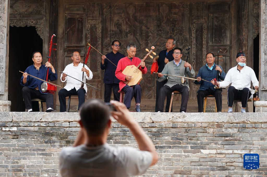 9月14日,游客在白鹿原影視城內觀(guān)看華陰老腔表演。