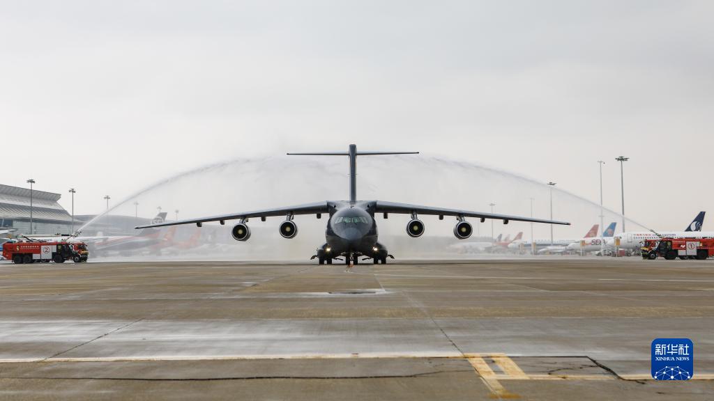 9月16日,在沈陽(yáng)桃仙國際機場(chǎng),運送志愿軍烈士遺骸的空軍專(zhuān)機通過(guò)水門(mén)。