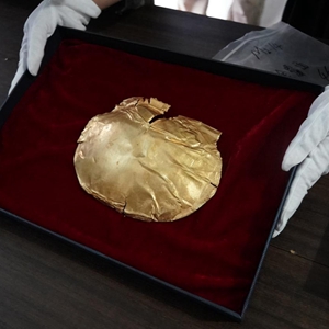 一件比三星堆黃金面具年代還早的金覆面,日前在鄭州商城遺址一高等級貴族墓中出土,同時(shí)出土的還有4個(gè)金泡、金箔以及以金箔為地鑲嵌綠松石的牌飾等,刷新了對中原地區黃金文化的認知。