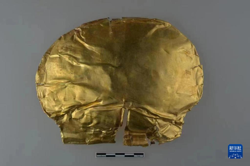 這是鄭州商城遺址高等級貴族墓M2中出土的金覆面。
