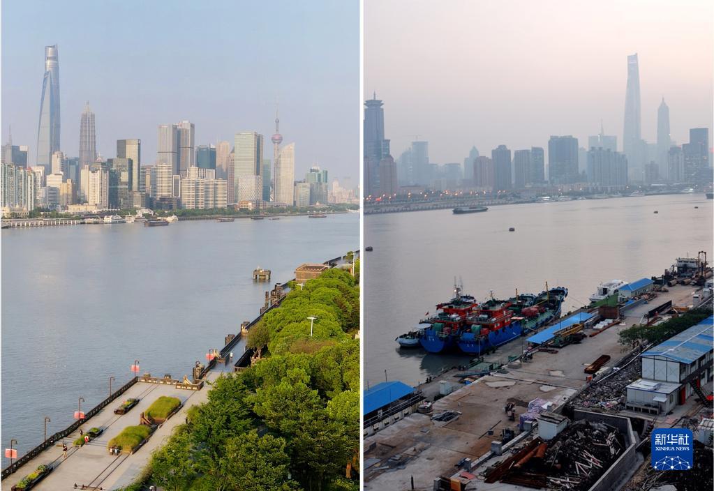 拼版照片:左圖為2022年7月28日拍攝的楊浦濱江新貌(無(wú)人機照片,新華社記者方喆攝);右圖為2015年10月28日拍攝的楊浦濱江舊貌(資料照片,趙明玉攝)。