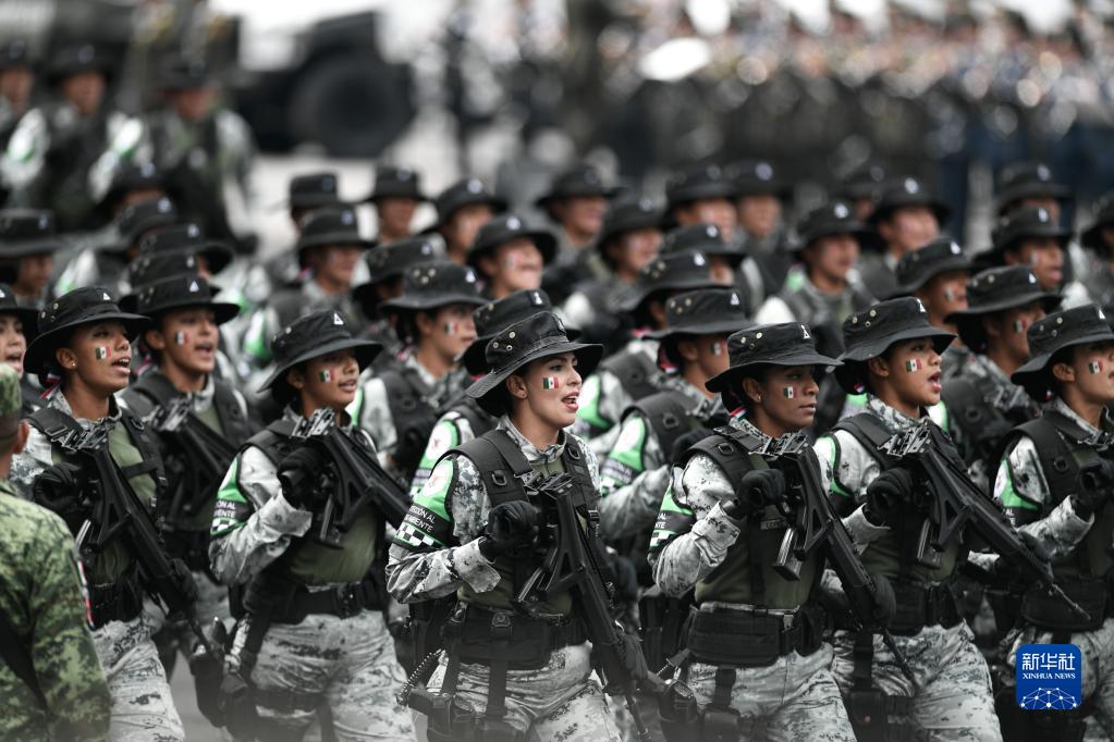 9月16日,在墨西哥首都墨西哥城,墨西哥國民警衛隊參加閱兵式。
