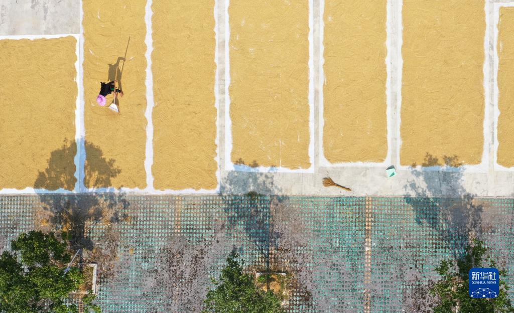 金秋時(shí)節,農民忙著(zhù)收獲晾曬,到處是一派豐收景象。