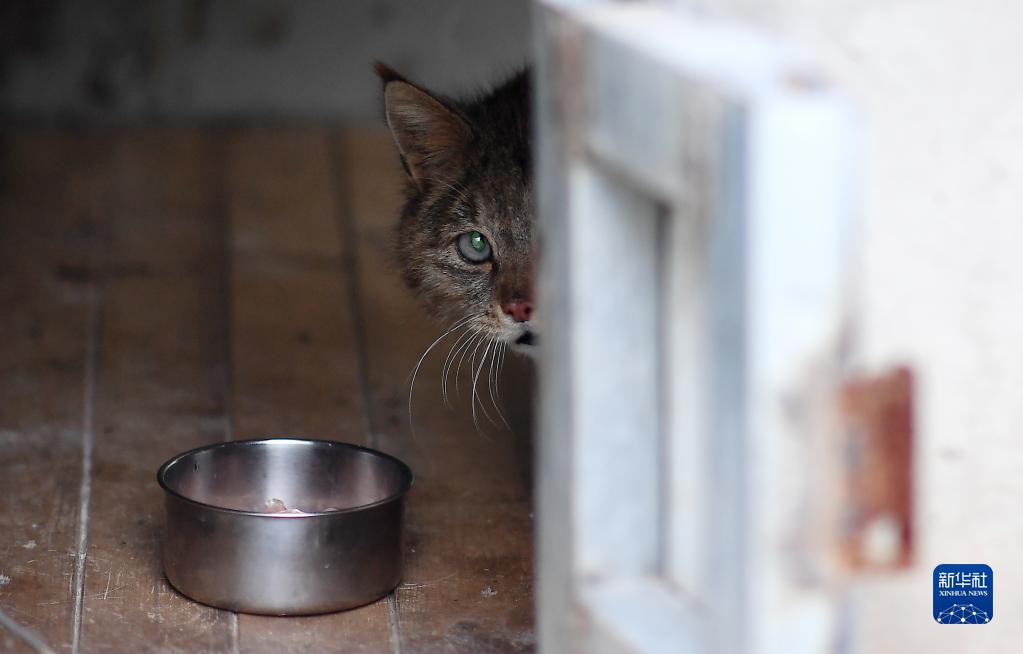 9月18日,受救護的荒漠貓在青海野生動(dòng)物救護繁育中心準備進(jìn)食。