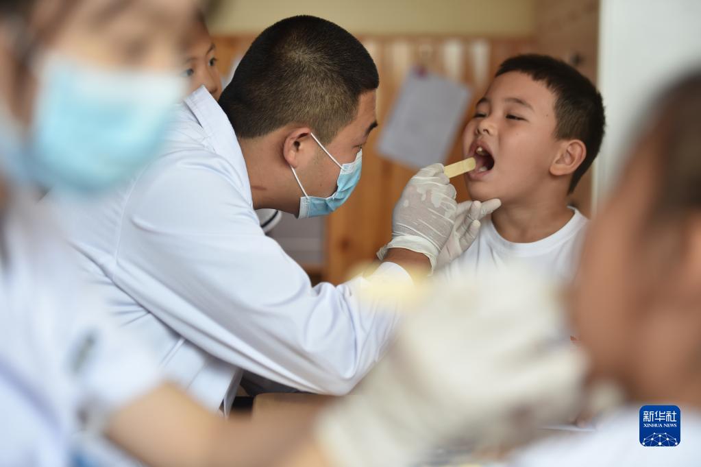 9月19日,河北省石家莊市井陘縣醫院口腔科醫生為小朋友進(jìn)行牙齒檢查。