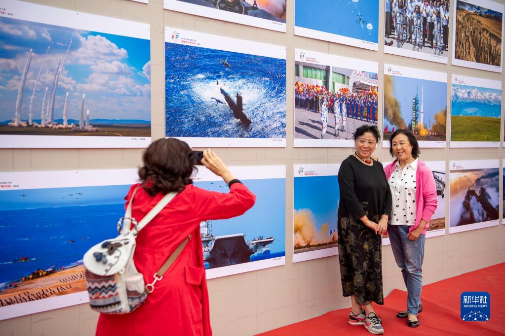 9月19日,參觀(guān)者在第22屆平遙國際攝影大展上合影。