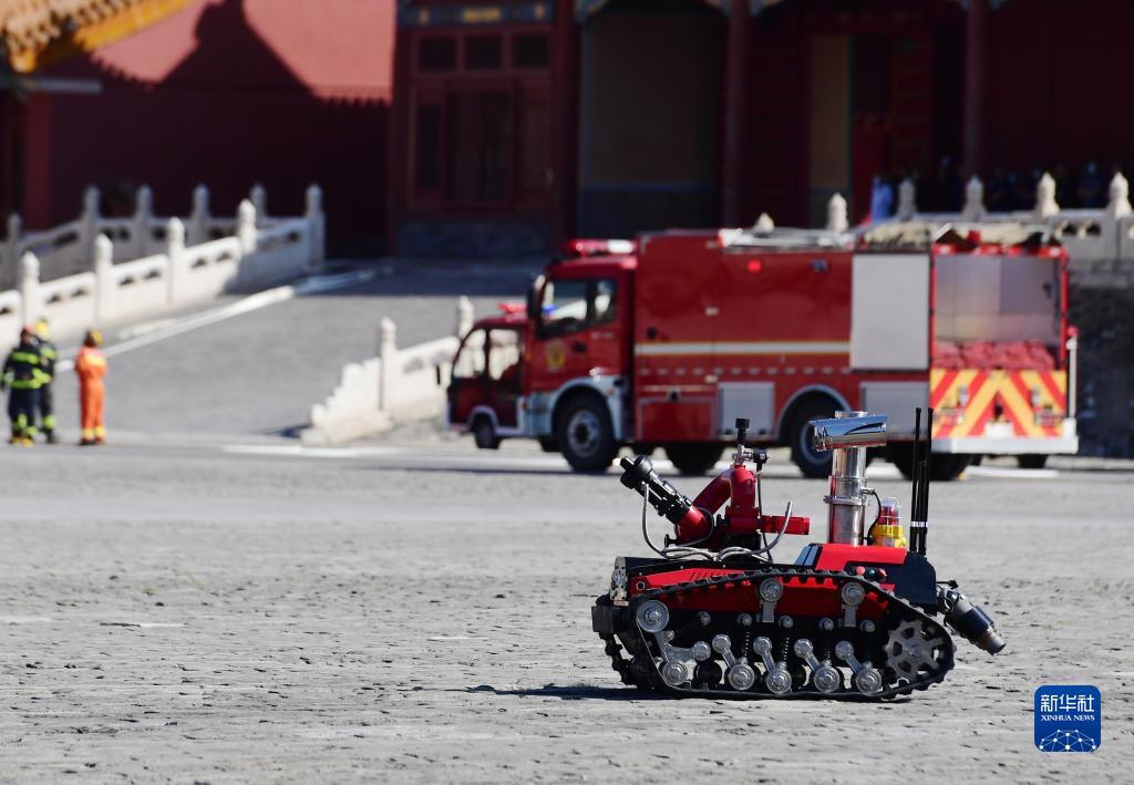 9月19日,消防機器人在故宮太和殿前進(jìn)行消防演練。
