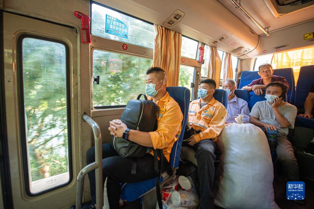 9月19日,看守員趙偉燈(左一)與蔡金礦(左二)乘坐鄉村公交車(chē)前往赤嶺隧道。