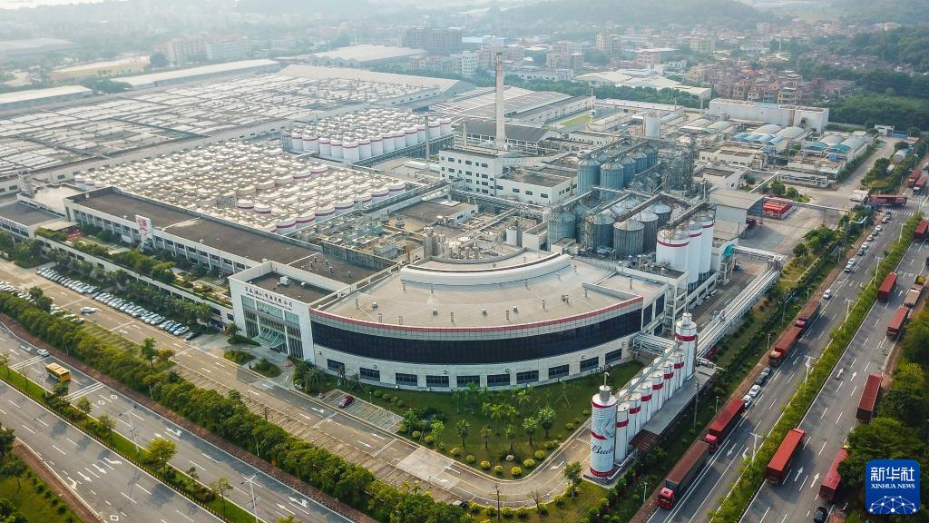 三水“水都基地”的百威啤酒廠(chǎng)年產(chǎn)量達160萬(wàn)噸,位列亞洲啤酒單廠(chǎng)產(chǎn)能前列(9月17日攝,無(wú)人機照片)。