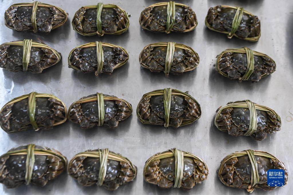 9月20日,織里鎮喬溇村的溇港人家太湖蟹生態(tài)養殖基地內,用稻草捆扎好的太湖蟹即將發(fā)往各地。