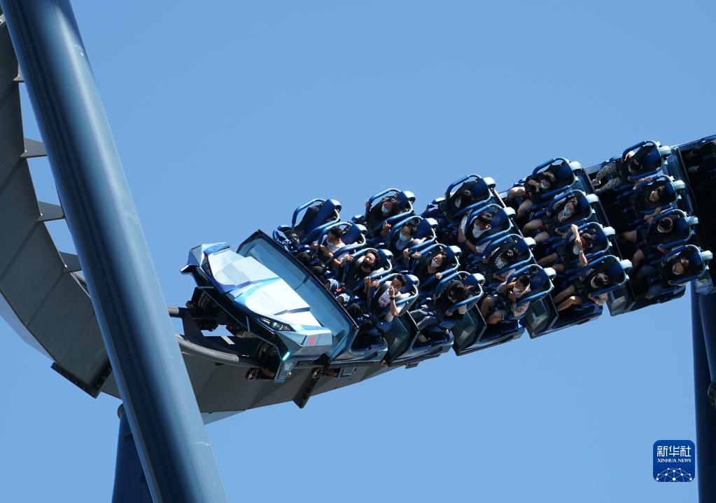 9月20日,游客在北京環(huán)球影城體驗“霸天虎過(guò)山車(chē)”。
