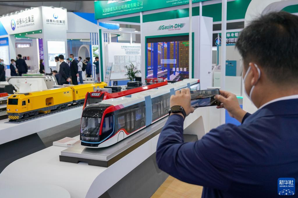 9月20日,在第七屆中國-亞歐博覽會(huì )上,參觀(guān)者在中國中車(chē)股份有限公司展位拍照。