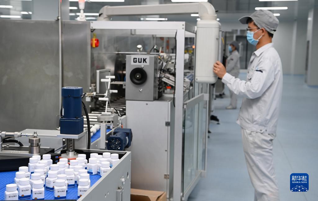 陜西漢王藥業(yè)股份有限公司員工在中藥片劑自動(dòng)化包裝線(xiàn)上(9月20日攝)。漢中特殊的地理環(huán)境和氣候條件,為研發(fā)、生產(chǎn)綠色中成藥提供了得天獨厚的條件。