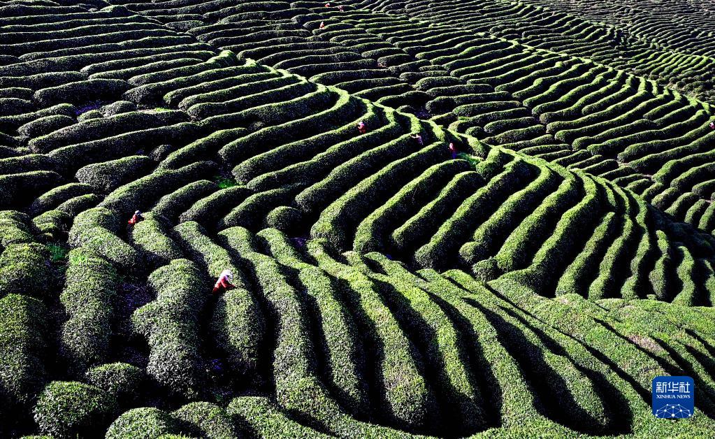 村民在陜西漢中市勉縣漆樹(shù)壩鎮巴山萬(wàn)峰萬(wàn)畝茶園采摘新茶(4月19日攝)。漢中市堅持“綠色循環(huán)·漢風(fēng)古韻”戰略定位,全市茶葉面積達到132.3萬(wàn)畝。