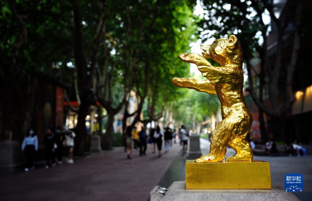 西影“電影圈子”星光大道旁的雕塑(9月11日攝)。