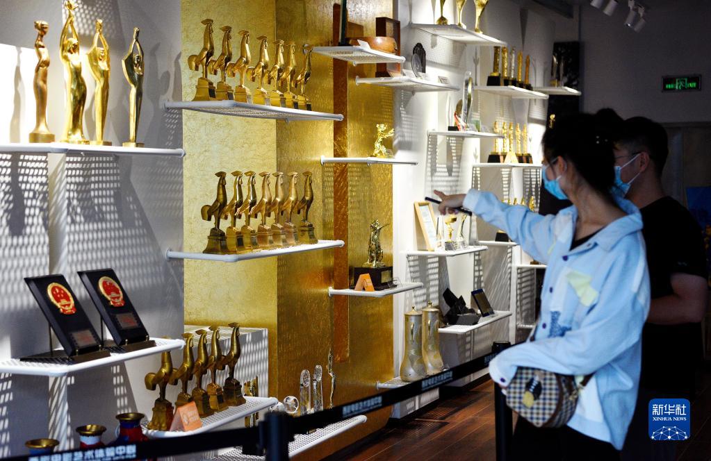 市民在西影電影藝術(shù)體驗中心參觀(guān)西影獲得的獎項(9月11日攝)。