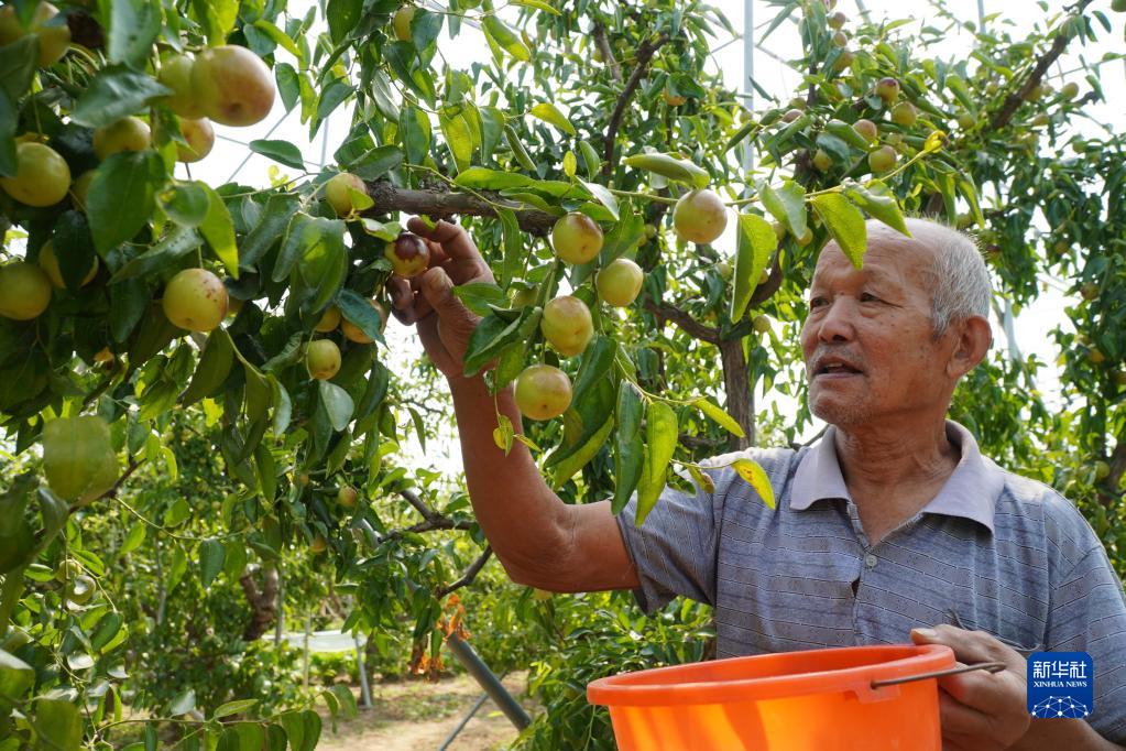 秋分前后,山東省濱州市沾化區大棚冬棗種植園內的冬棗開(kāi)始大面積進(jìn)入成熟期,棗農們忙著(zhù)采摘成熟的冬棗,喜迎豐收。近年來(lái),當地采取“黨支部+合作社+農戶(hù)”的方式,積極推廣大棚冬棗,帶動(dòng)棗農抱團發(fā)展、實(shí)現增收致富,目前全區大棚冬棗種植面積達到5萬(wàn)余畝。