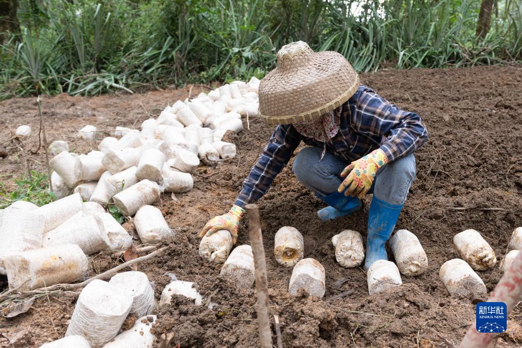 9月22日,在海南省白沙黎族自治縣青松鄉打松村,村民在種植虎奶菇。