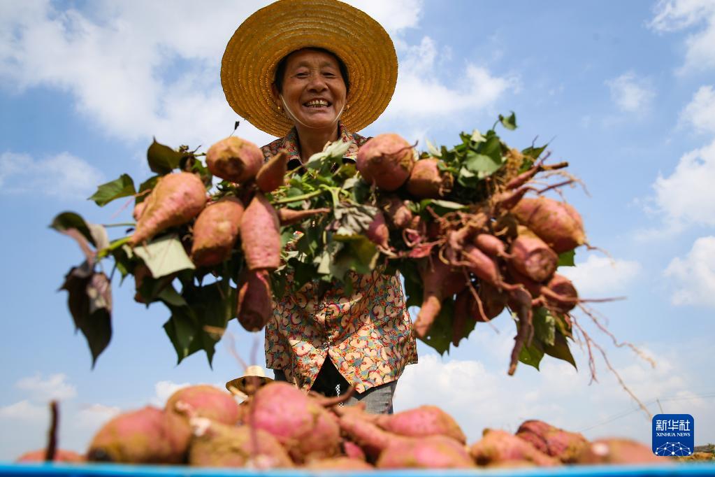 9月22日,江蘇省句容市寶華鎮倉頭村村民在收獲紅薯。
