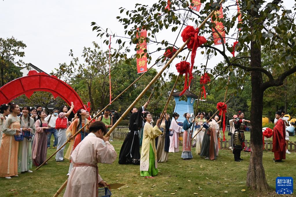 9月23日,市民和游客在西溪濕地體驗火柿采摘。