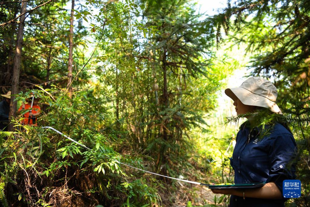 9月22日,白拉曲珍和同事在位于廣東韶關(guān)樂(lè )昌市張溪村的生態(tài)監測樣地工作。