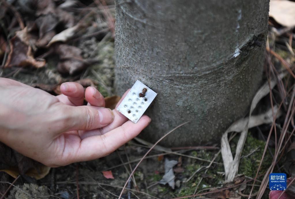 9月21日,在廣東韶關(guān)樂(lè )昌市秀水鎮大羅嶺村,白拉曲珍在石漠化生態(tài)恢復監測平臺固定樣地查看樹(shù)木標牌。