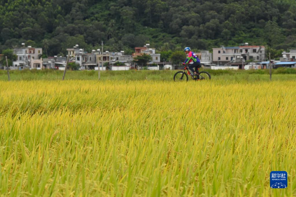 近日,位于海南陵水的國家南繁科研育種核心區安馬洋基地的稻田里稻香撲鼻,一片豐收在望的景象。