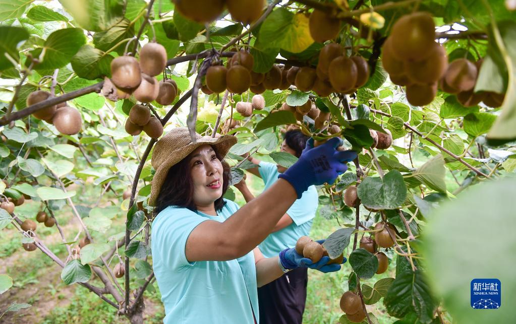 9月18日,在河南洛陽(yáng)市孟津區朝陽(yáng)鎮南陳村琪琪種植專(zhuān)業(yè)合作社獼猴桃生產(chǎn)基地,“70后”姚曉軍在采收獼猴桃。姚曉軍在2014年返鄉創(chuàng )業(yè),開(kāi)展獼猴桃和梨等特色產(chǎn)業(yè)種植,并成立專(zhuān)業(yè)合作社。眼下,她種植的近200畝獼猴桃優(yōu)良品種迎來(lái)成熟豐收期。