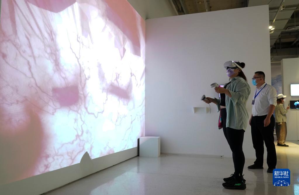 9月24日,參觀(guān)者在2022亞洲數字藝術(shù)展上體驗藝術(shù)作品。