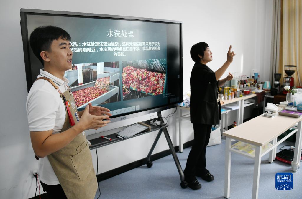 9月22日,在“無(wú)聲咖啡師”公益培訓課上,指導老師孫宇(左)和手語(yǔ)老師曲文敏(右)為學(xué)員講授咖啡相關(guān)知識。