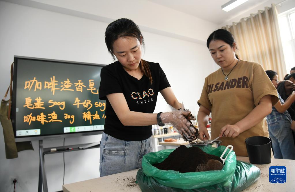 9月22日,在“無(wú)聲咖啡師”公益培訓課上,學(xué)員為制作咖啡渣香皂做準備工作。
