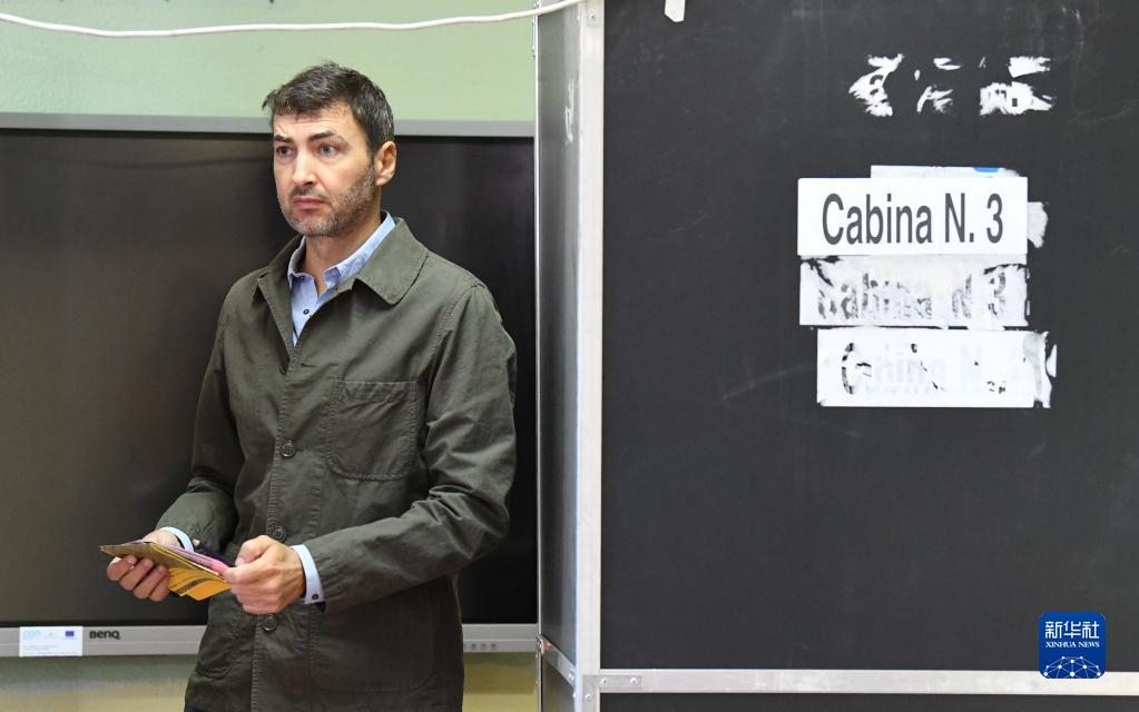 9月25日,在意大利羅馬一處投票站,一名選民準備投票。