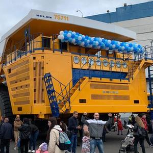9月24日,市民在白俄羅斯明斯克州若基諾市的白俄羅斯汽車(chē)制造廠(chǎng)參觀(guān)Belaz75711大型自卸車(chē)。