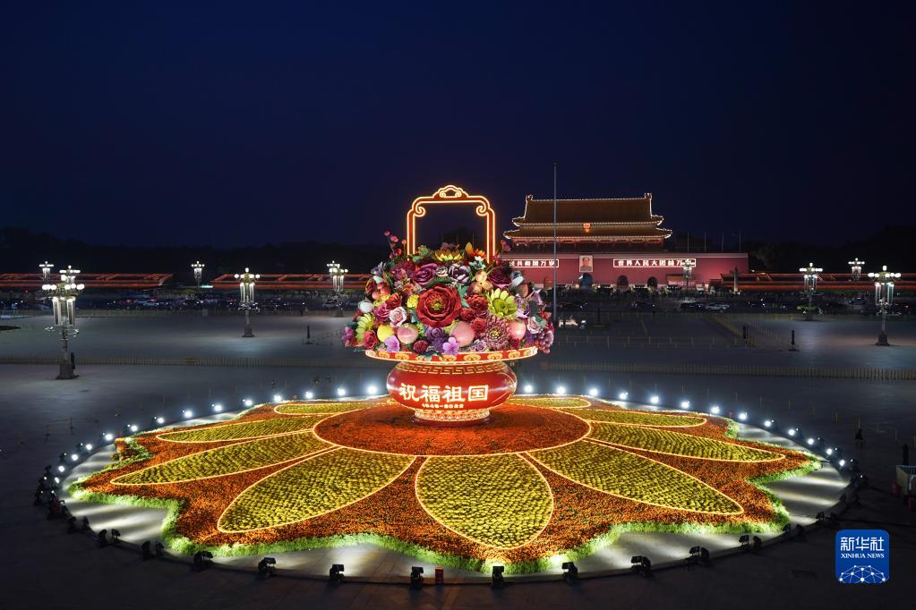 新華全媒+|“祝福祖國”巨型花果籃亮相天安門(mén)廣場(chǎng)