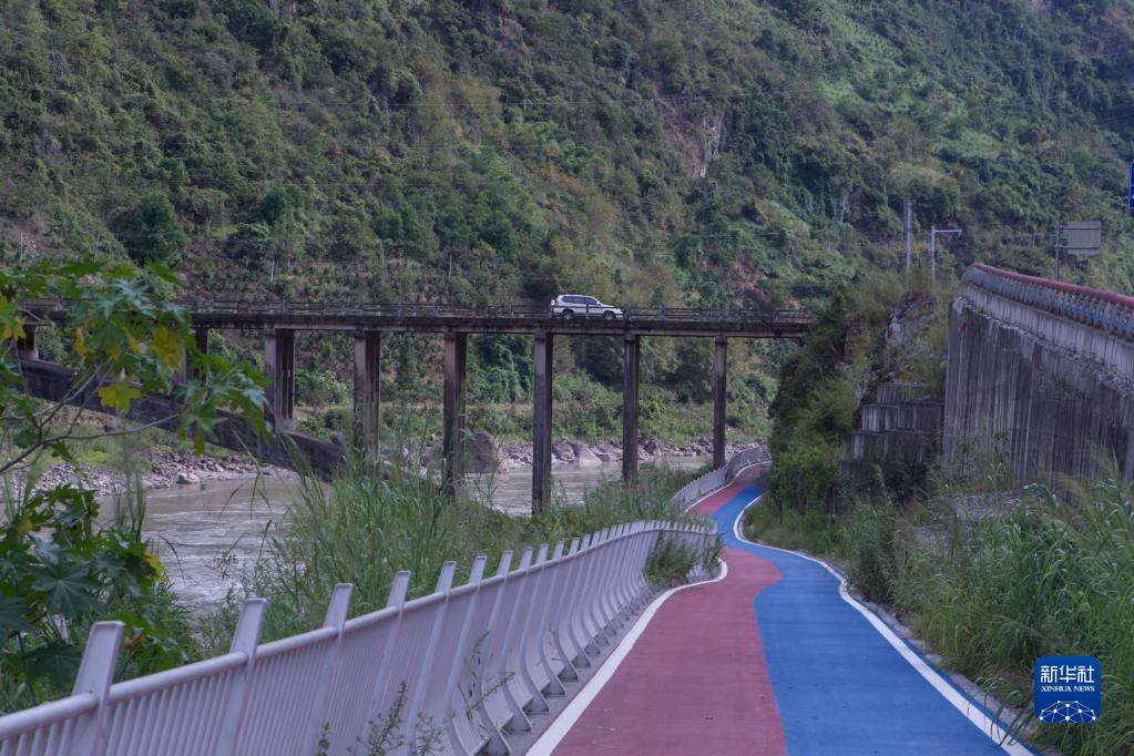 這是2022年9月13日拍攝的怒江沿線(xiàn)的“美麗公路”綠道和橋梁。新華社記者岑云鵬攝