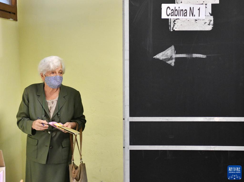 9月25日,在意大利羅馬一處投票站,一名選民準備投票。