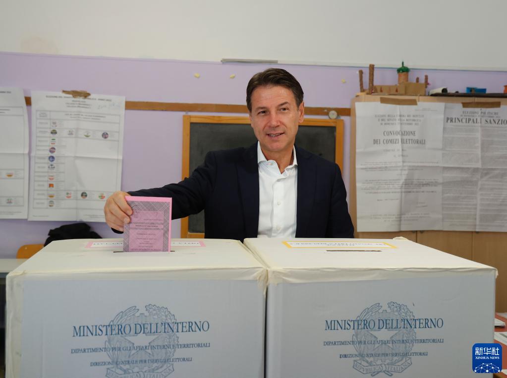 9月25日,意大利前總理、“五星運動(dòng)”黨黨首孔特在羅馬投票。