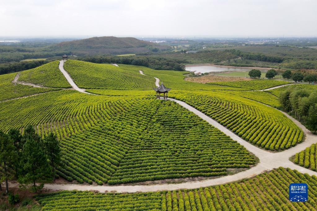 9月27日拍攝的安徽省郎溪縣濤城鎮大佛山養心谷黃金茶園(無(wú)人機照片)。
